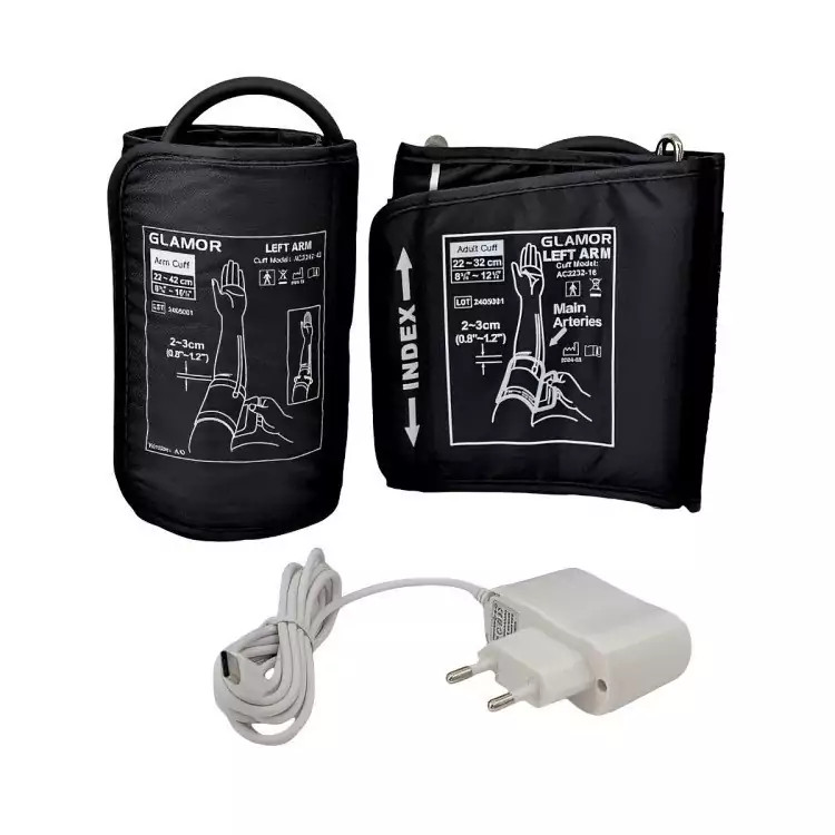 فشارسنج دیجیتال هوشمند سخنگو گلامور مدل TMB-1112 SE/C اتصال به تلفن های همراه هوشمند Android و iOS جهت ثبت و آنالیز نتایج را دارد و نتایج را به زبان فارسی اعلام می کند. صفحه نمایش تعبیه شده در این فشارسنج دیجیتال هوشمند ال سی دی از نوع رنگی، بزرگ و خوانا می باشد. همچنین مجهز به آداپتور و پورت USB TYPE-C است. فشارسنج TMB-1112 SE/C در ابعاد 42.9*101*178 میلیمتر و با وزنی برابر 343 گرم تولید شده است و از کاف استاندارد (22 تا 36 سانتیمتر) و کاف استوانه ای (22 تا 42 سانتیمتر) بهره می برد. دامنه اندازه گیری ضربان قلب 40 تا 199 ضربان در دقیقه و دقت فشار ±3 mmHg و دقت ضربان قلب ±5% می باشد. منبع انرژی DC تعبیه شده در این مدل چهار عدد باتری قلمی (AA) می باشد که انرژی مورد نیاز را تامین می کند. ظرفیت حافظه در این فشارسنج سخنگو گلامور 250 حافظه برای دو کاربر و حالت مهمان می باشد. قابلیت اعلان صوتی نمایش وضعیت باتری قابلیت تشخیص آریتمی سنجش ضربان قلب اتصال از طریق بلوتوث حافظه ذخیره نتایج (به همرا 5 سال گارنتی)
