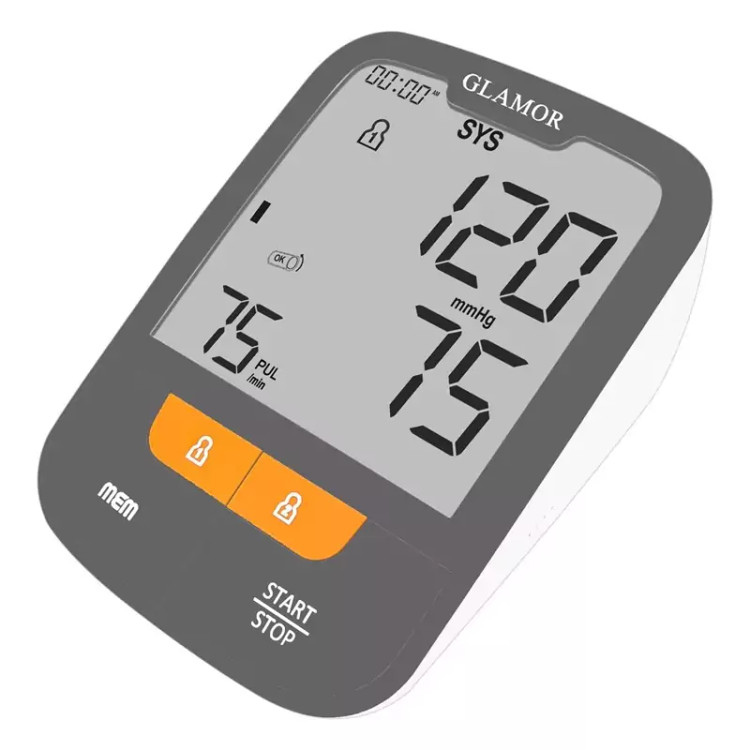 فشار سنج دیجیتال گلامور مدل DBP-6181 مناسب برای سنجش فشار خون به صورت اتوماتیک از طریق بازو می باشد، همچنین این محصول ضربان قلب را نیز اندازه گیری میکند.فشار سنج گلامور هم با باتری هم با برق کار می کند که درون جعبه این محصول آدابتور موجود می باشد. فشار سنج گلامور یک صفحه نمایش رنگی بزرگ دارد که از طریق آن میتواند میزان ضربان قلب را نمایش دهد.این محصول دارای یک کاف پارچه ای برای دور بازو 22 الی 36 سانتیمتر و یک کاف پارچه ای برای دور بازو 22 الی 42 سانتیمتر می باشد.گلامور 6181 با دو جایگاه 60 عددی حافظه دارد که فشار خون مربوط به کاربر با تاریخ و ساعت را در خود ذخیره میکند.قابلیت خاموشی خودکار از دیگر ویژگیهای مثبت این دستگاه است که DBP-6181 را پس از استفاده بهصورت خود به خود خاموش میکند.DBP-6181 دارای قابلیتها و ویژگیهایی از قبیل صفحه نمایش رنگی بزرگ، حافظهی ذخیرهی نتایج، نمایش ضربان قلب نامنظم، قابلیت خاموشی خودکار، نوع بازویی، منبع تغذیهی برق و باتری است.